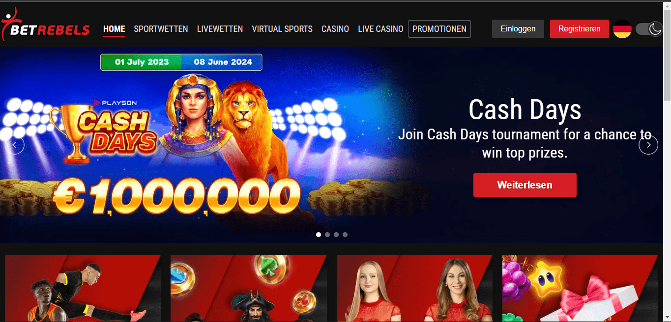 Betrebels Casino ist ein Online-Casino, das eine Vielzahl von Spielen anbietet, darunter Video-Slots, Tischspiele, Live-Spiele, Live-Wetten und virtuelle Sportarten. Mitglieder können hier Spiele von mehreren Anbietern genießen, darunter NetEnt, Microgaming, Betsoft, iSoftBet und Pragmatic Play. Die Seite kann sofort gespielt werden, oder Spieler können sich über ihr mobiles Casino anmelden. Die Seite ist auch in mehreren Sprachen wie Englisch, Italienisch und Spanisch verfügbar. Das Casino ist nach maltesischem Recht lizenziert und reguliert.