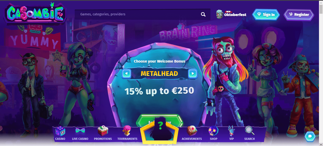Das Casombie bietet über 2000 verschiedene Casinospiele wie Slots, Live-Spiele, Poker, Roulette und Blackjack. In einer so umfangreichen Spielebibliothek werden Sie mit Sicherheit Ihr Lieblingsspiel finden.
